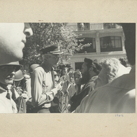 - Se observa la columna de Madres de Plaza de Mayo frente a un grupo de policías y al Fray capuchino Antonio Puigjané conversando con el comisario a cargo de las fuerzas policiales