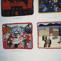 - Imagen de piezas textiles. Obras representando escenas de represión