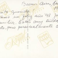 - Retrato grupal. Se identifica a Nora Cortiñas junto a Sara Azami y otra persona no identificada. En el dorso de la fotografía se encuentra texto manuscrito con la intención de enviar la fotografía a Sara Azami en Chicago, Estados Unidos