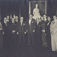 - Carlos Aloé con cooperativistas. De fondo, un retrato de Eva Duarte de Perón