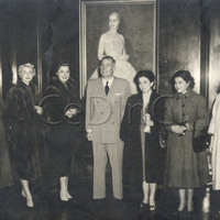 - Carlos Aloé con un grupo de mujeres. De fondo, un retrato de Eva Duarte de Perón.