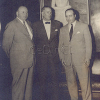 - Carlos Aloé con dos señores. De fondo, un retrato de Eva Duarte de Perón.
