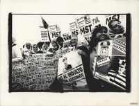 Impresos de fotografías del archivo del diario La Nación. Detalle de bandera y carteles
