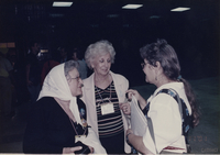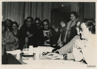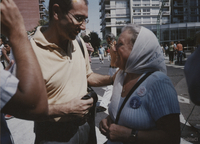 Registro de Madres de Plaza de Mayo en distintos eventos. Retrato de Nora Cortiñas y Hebe de Bonafini hablando en un evento en Suecia [1980] 7.7. Madres de Plaza de Mayo -
