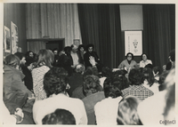 Registro de Madres de Plaza de Mayo en distintos eventos. Retrato de Nora Cortiñas y Hebe de Bonafini hablando en un evento en Suecia [1980] 7.7. Madres de Plaza de Mayo