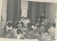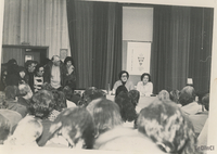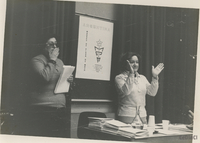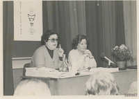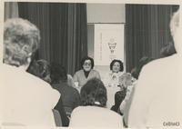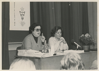 Registro de Madres de Plaza de Mayo en distintos eventos. Retrato de Nora Cortiñas y Hebe de Bonafini hablando en un evento en Suecia [1980] 7.7. Madres de Plaza de Mayo -