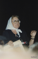 Retrato de Nora Cortiñas frente a micrófono 7.3. Retratos -