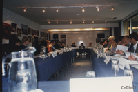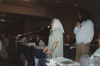 Foro Social de la Triple Frontera (Puerto Iguazú, Misiones, Argentina) [06/2004]. Retrato de participantes en un bar