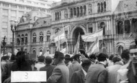 Multitud reunida. Pancartas: "GASTRONOMICOS CON PERÓN".