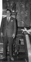 Juan Domingo Perón en una conferencia del ex jefe de la Falange y ex ministro de Justicia, Fernández Cuesta. El tema de la conferencia era "La evolución política en Europa"