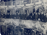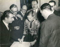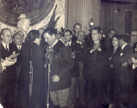 Juan Domingo Perón con un grupo en el Festival Internacional de Mar del Plata