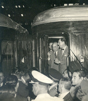 Discurso del embajador de la República de Chile en la Argentina, Doctor Conrado Ríos Gallardo. Al lado está Juan Domingo Perón