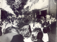 Personas en sillas de ruedas en los festejos por el regreso de Perón en Vicente López.