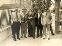 Personalidades en Ezeiza reciben a Juan Domingo Perón.