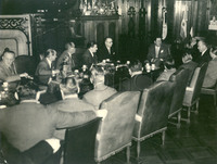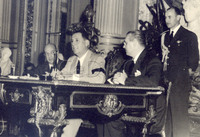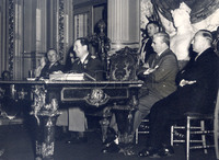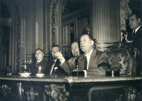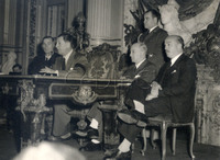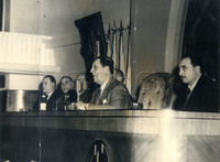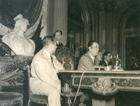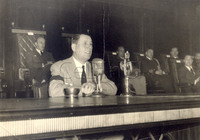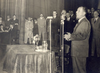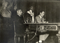 Discurso de Juan Domingo Perón. A su lado, Carlos Aloé