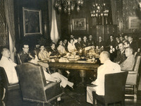 Juan Domingo Perón habla a delegaciones obreras chilenas