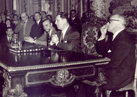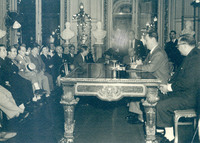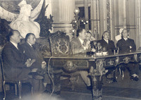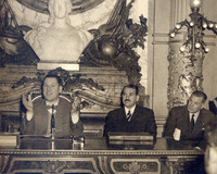 Juan Domingo Perón habla a la delegación de escribanos, le piden la reelección