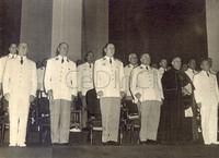 Juan Domingo Perón y Eva Duarte de Perón en un banquete con el Ejército, marina y aeronáutica