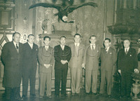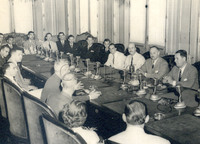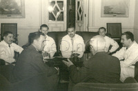 Eva Duarte de Perón con ministros bonaerenses, le piden la reelección