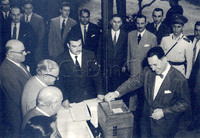 - Juan Domingo Perón saluda al presidente de la Cámara de comercio de los Ángeles Sr. Oscar Trippet
