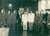 Juan Domingo Perón con los periodistas salteños que recorrieron en automóvil las 14 provincias en adhesión a la reelección del general Perón