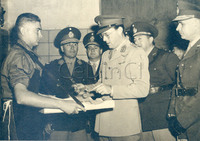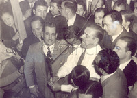 Juan Domingo Perón con los productores hortícola, le piden la reelección