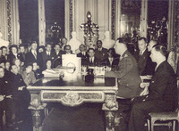 Juan Domingo Perón con la colectividad polaca, le piden la reelección