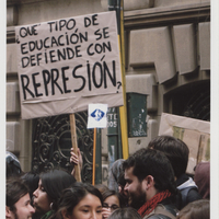 - Registro de la movilización. Detalle de cartel con la frase "¿Qué tipo de educación de defiende con represión?"