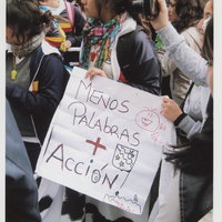 - Imagen de jóvenes asistentes a la manifestación. Detalle de cartel con la consigna "Menos palabras + acción"