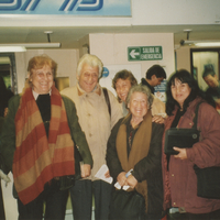 - Retrato de Nora Cortiñas junto a personas no identificadas en aeropuerto