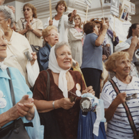 - Retrato de Nora Cortiñas y Josefina "Pepa" García de Noia manifestándose en la esquina de la Catedral de Buenos Aires