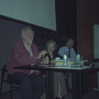 - Mesa de comunicación con Nora Cortiñas y dos expositores no identificados