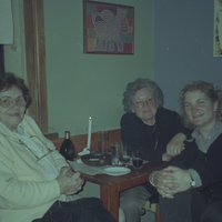 - Retrato grupal. Nora Cortiñas, Margarita Peralta de Gropper y una persona identificada como Sara cenando en en el bar La Casa en el Aire, bar cultural ubicado en el barrio Bellavista de Santiago