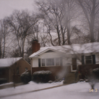 - Se observa casa suburbana con jardín nevado
