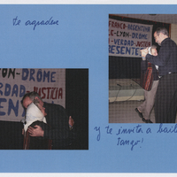 - Album artesanal con fotografías y recortes de la visita de Nora Cortiñas a Drôme, Francia [02/04/2006]. Retrato de Nora Cortiñas y el Alcalde de Eurre