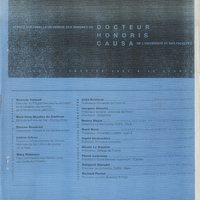 - Publicación con fotografías de la entrega de títulos Doctor Honoris Causa de la Universidad Libre de Bruselas, Bélgica [2000]. Tapa de la publicación