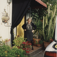 - Imagen de Nora Cortiñas posando en la entrada de una casa