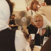 - Registro de Madres de Plaza de Mayo en distintos eventos. Movilización a 9 meses del asesinato de José Luis Cabezas (Buenos Aires, Argentina) [18/10/1997]. Retrato de Nora Cortiñas