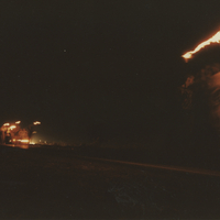- Fotografía nocturna. Se observa una manifestación con antorchas sobre la ruta