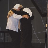 - Retrato de Nora Cortiñas y Olga Márquez de Arédez bailando chamamé arriba de un escenario