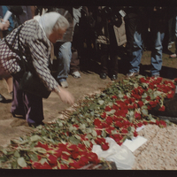 - Imagen de Nora Cortiñas dejando una rosa en el entierro