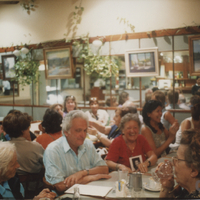 - Retrato de Madres de Plaza de Mayo, Línea Fundadora junto a otras personas en un bar. Se identifican a Nora Cortiñas y Josefina "Pepa" García de Noia