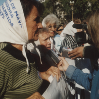 - Entrevista a Madres de Plaza de Mayo, Línea Fundadora durante la marcha. Se identifica a Lidia “Taty” Almeida, Nora Cortiñas y Mirta Acuña de Baravalle