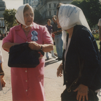 - Imagen de Madres de Plaza de Mayo, Línea Fundadora en la Plaza de Mayo. Se identifica a Aurora Zucco de Bellocchio y Enriqueta Asunción Rodríguez de Maroni