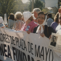 - Imagen de Madres de Plaza de Mayo, Línea Fundadora en la Plaza de Mayo. Se identifica a Aurora Zucco de Bellocchio, Enriqueta Asunción Rodríguez de Maroni y Adelina Dolores Lara Rizzo Molina