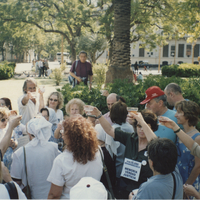 - Imagen de Madres de Plaza de Mayo brindando en la Plaza de Mayo junto a un grupo de personas no identificadas