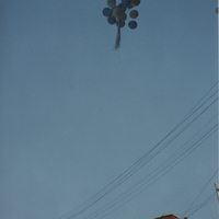 - Detalle de globos celestes y blancos con la consigna "Cacerolazo contra la Corte Suprema de Justicia"