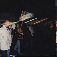 - Se observa a Nora Cortiñas y otras Madres de Plaza de Mayo acompañando movilización de docentes. Llevan carteles con la frase "Docente argentino ayunando"