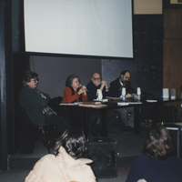 - Retrato de mesa de expositores en el marco de la Cátedra Libre Poder Económico y Derechos Humanos. Se identifica a Nora Cortiñas