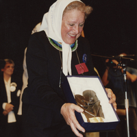 - Imagen de Nora Cortiñas mostrando premio recibido